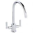 Abode's unique integrated water filtration technology has cold, hot and pure indicators on the top of the handles to allow the flow of water through the same spout and using just two handles.