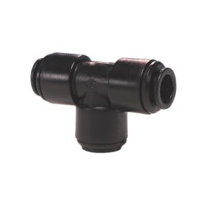 DM Fit 6mm Equal Tee manufactured from a black acetal copolymer, which is a safe and non-toxic material suitable for potable liquids and applications involving foodstuff.