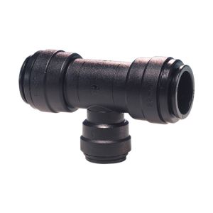 DM Fit Reducing Tee manufactured from a black acetal copolymer, which is a safe and non-toxic material suitable for potable liquids and applications involving foodstuff.