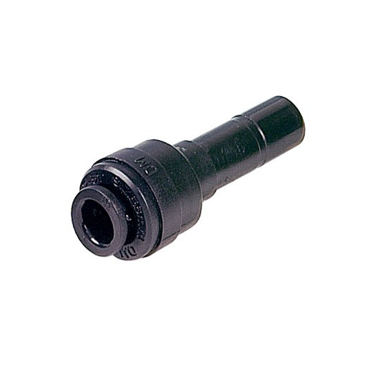 Acetal push fit stem adaptors with BSP (British Standard Pipe) threads manufactured by DM Fit and available in a range of different imperial and metric sizes.