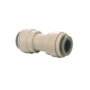 DM Fit 1/2" Equal Straight Connector manufactured from a grey acetal copolymer, which is a safe and non-toxic material suitable for potable liquids and applications involving foodstuff.