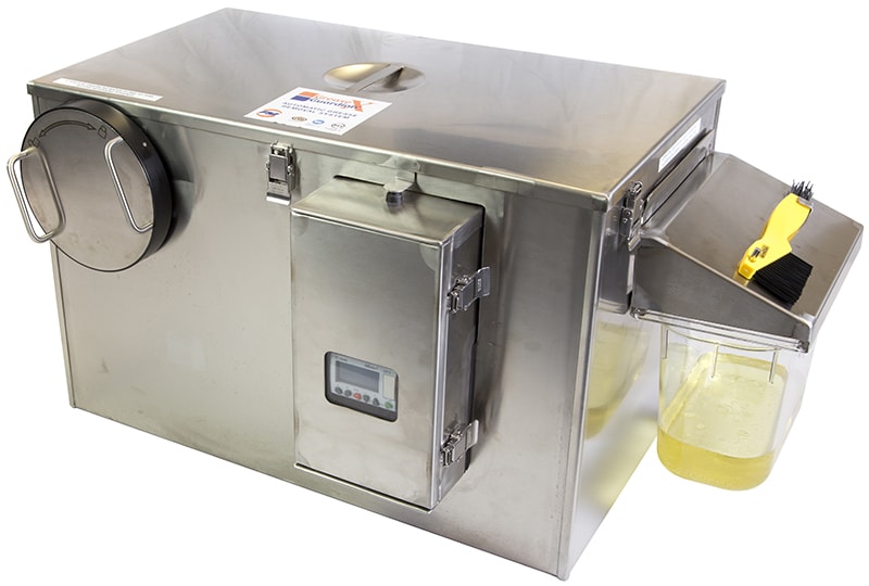 Automatic systems, also known as AGRU’s (automatic grease removal units), use some of the same principals as a traditional passive trap but re-heat and skim out the FOG automatically on a programmed schedule. The skimmed FOG is then transferred into a collector bin for easy removal and recycling. The programmed schedule is based on the amount of FOG produced and means operators don’t have to measure or check grease levels.