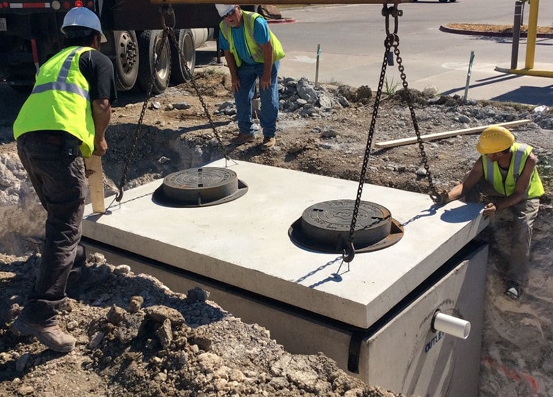 Gravity systems are usually large in-ground tanks constructed from concrete, fibreglass or steel. They work in a similar way to a passive hydromechanical trap but have a much larger capacity and are better for high-flow applications.