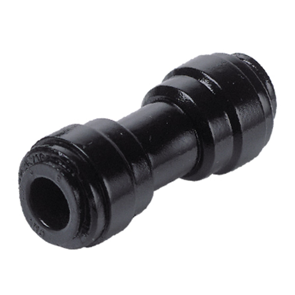 Acetal push fit equal straight connectors manufactured by DM Fit and available in a range of different imperial and metric sizes.