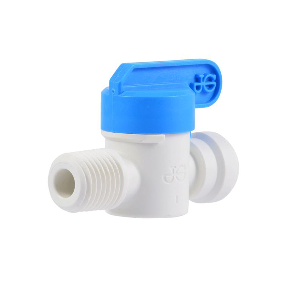 John Guest shut off valves available in a range of different imperial and metric size push fit and NPTF male connections.